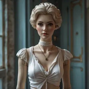 «A Victorian gothic mansion in the moonlight, dead twisted trees,...»