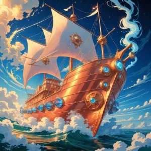 «A majestic, steam-powered satellite schooner sails through the s...»