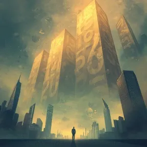 «Lucid dream style illustration showing historic wealth dwarfing...»
