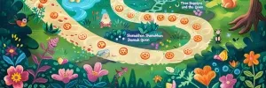 «A detailed fantasy board game illustration with a path made of 1...»