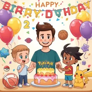 «Create a vibrant cartoon-style image for Henry's birthday party...»