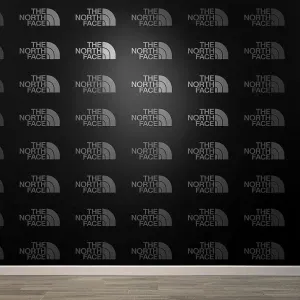 «Create a sleek black wall adorned with a large, prominent emblem...»