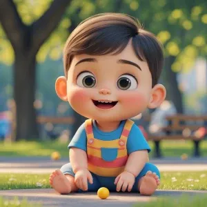 «3d cartoon baby play in Park»