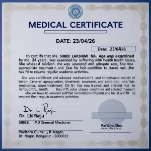«Generate a medical certificate with name. Ravi Kira age 18 date....»