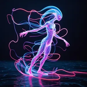 «A hauntingly ethereal apparition drifts among swirling clouds of...»