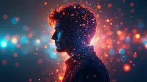 «In a gleaming technicolor world, vibrant holographic athletes co...»