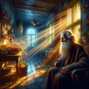 «Storm over lavender fields, impressionist style Greek statue bat...»