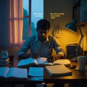 «Ultra-realistic cinematic 16:9 image showing a NEET aspirant res...»