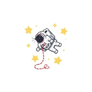 «Minimal illustration of a floating cat in a small spacesuit with...»