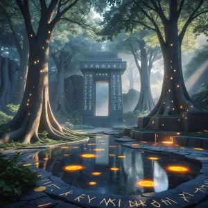 «Temple of Whispering Leaves: A sacred space unfolds beneath a ca...»