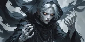 «A mysterious and ethereal necromancer, clad in tattered black ro...»