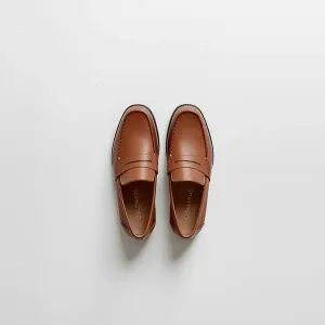 «Create a minimalist flat lay composition with a pair of brown l...»