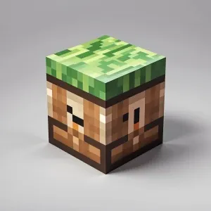 «A Minecraft grass block, iconic cube with green grass top and br...»