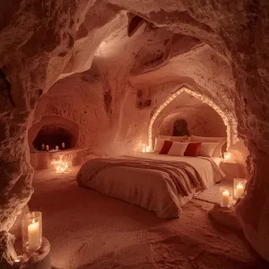«Step into the Pink Rainfall Cave, a sanctuary carved from delica...»