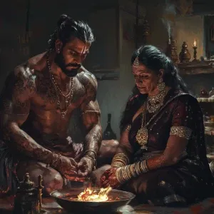 «A realistic art, finely detailed depiction of a buff, tattooed m...»