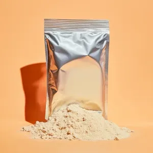 «Create an image of organic soymilk powder in an aluminum bag pac...»