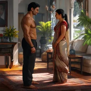 «Digital art 1:1 ,a 54-year-old Gujarati aunty who works as a hou...»