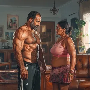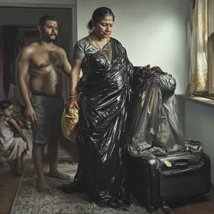 «HD digital art depicting a 54-year-old Gujarati mother who works...»