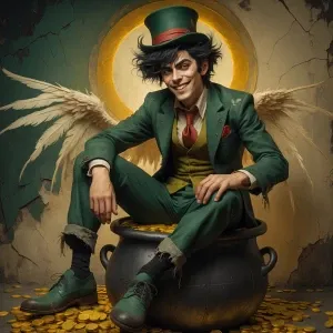 «A dark, whimsical digital painting of a mischievous young man wi...»