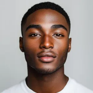 «A 22-year-old African American man with dark skin, a clean-shave...»