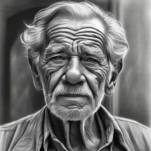 «A detailed graphite portrait of a weathered old man, his wrinkle...»