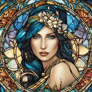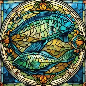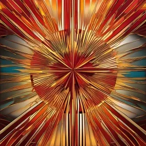 «A larger Art Deco-style panel depicting a sleek, angular sunburs...»