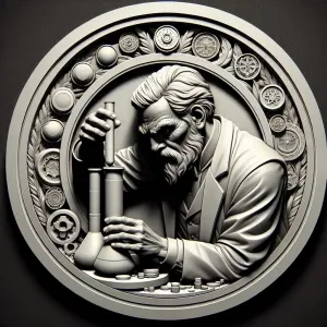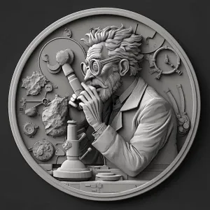 «Design a high-contrast grayscale 3d bas relief of a mad scientis...»