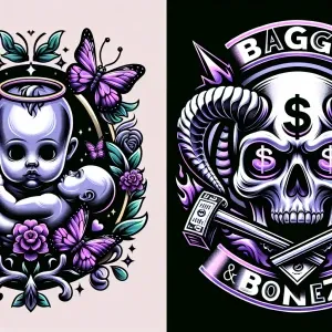 «Baby loves logo with butterflies and purples(masterpiece, best q...»