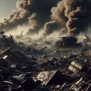 «Generate a hyper-realistic image showcasing a dystopian battlefi...»