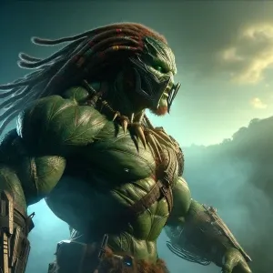 «Hulk in the style of Yautja's (Hunter Predator),ultra-detailed,...»