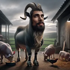 «A majestic, powerfully built goat with the head of a 30-year-old...»