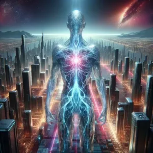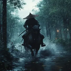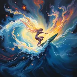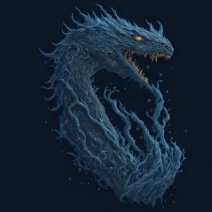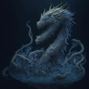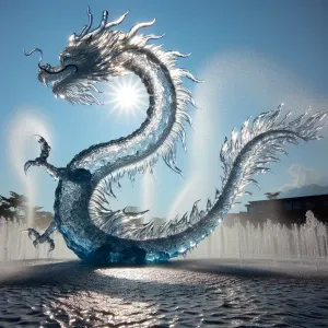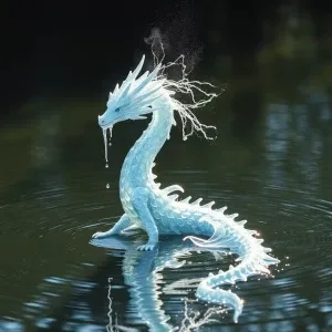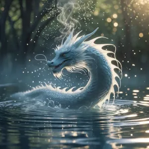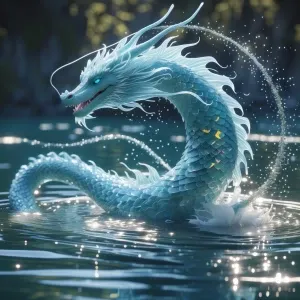 «"In the heart of a tranquil lake, a magnificent water dragon eme...»
