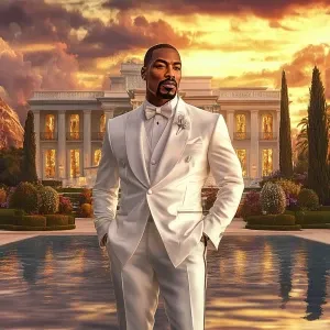 «create a highly detailed image of a man resembling 2Pac, dressed...»