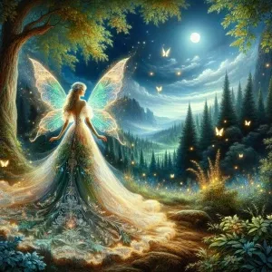 «Amidst a fantastical forest, a luminescent fairy glows with ethe...»