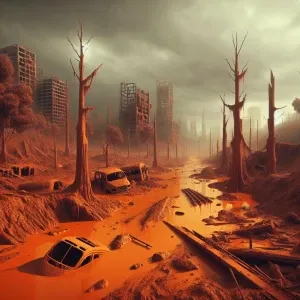 «Generate a hyper-realistic depicting a landscape devastated by o...»