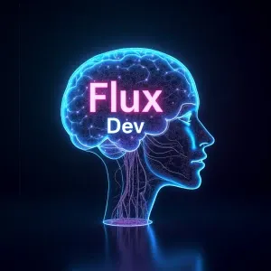 «A futuristic and visually striking ["Flux Dev" text ] The words...»