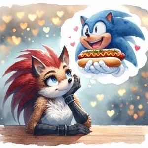 «realistic watercolor. she Amy Rose hedgehog from Sonic, elbows r...»