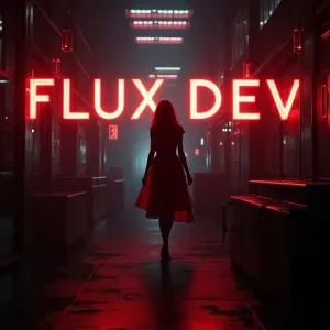 «A futuristic and visually striking ["Flux Dev" text ] , A flawle...»