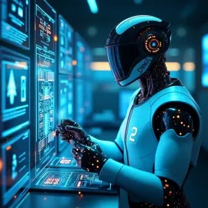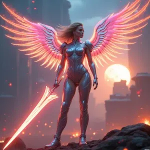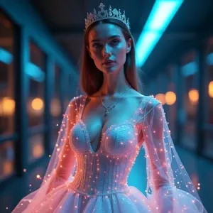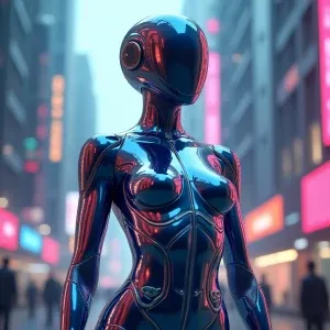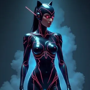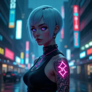 «A hyper-realistic portrait of a futuristic cyberpunk woman with...»