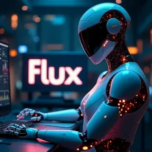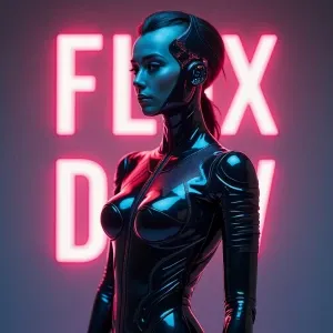 «A futuristic and visually striking digital artwork with "Flux De...»
