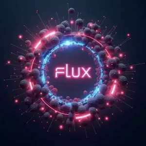«A futuristic and visually striking digital artwork with "Flux De...»