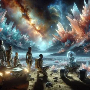 «An astronaut discovering a surreal alien planet with pink skies,...»