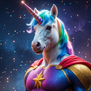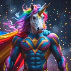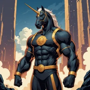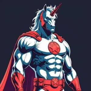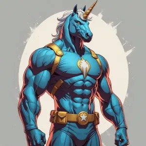 «Design an illustration showcasing Unicorn Man, a powerful superh...»