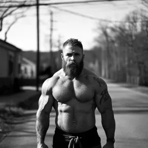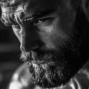 «A strong, muscular Tarzan with shoulder-length wild hair, wearin...»