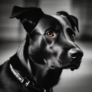 «A close-up portrait of a dog’s face, with dramatic lighting high...»