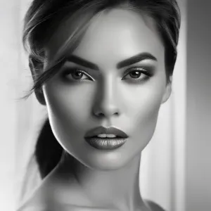 «A striking close-up of a woman’s face, her lips brightly lit aga...»
