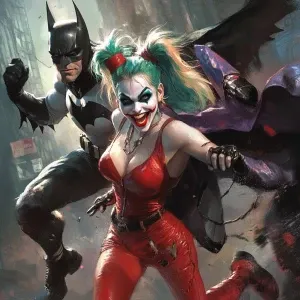 «Create a full-body image of Harley Quinn, showcasing her iconic...»