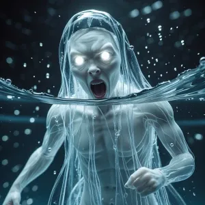 «Ultra-realistic 8K IMAX cinematic shot of A Ghost made of Water,...»