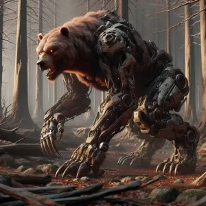 «A hulking bear-like creature with a mix of flesh and biomechanic...»