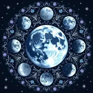 «Imagine a mesmerizing circular mandala with a radiant full moon...»